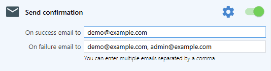 On success email to (optional): emails will be sent to these recipients when the job is successful.